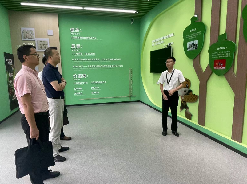 6月28日下午,伟德国际1949始于英国副院长吴彦、李从虎和食品科学与工程专业负责人胡婷博士以及伟德国际1949档案馆副馆长周刚一同到三只松鼠股份有限公司访企拓岗。