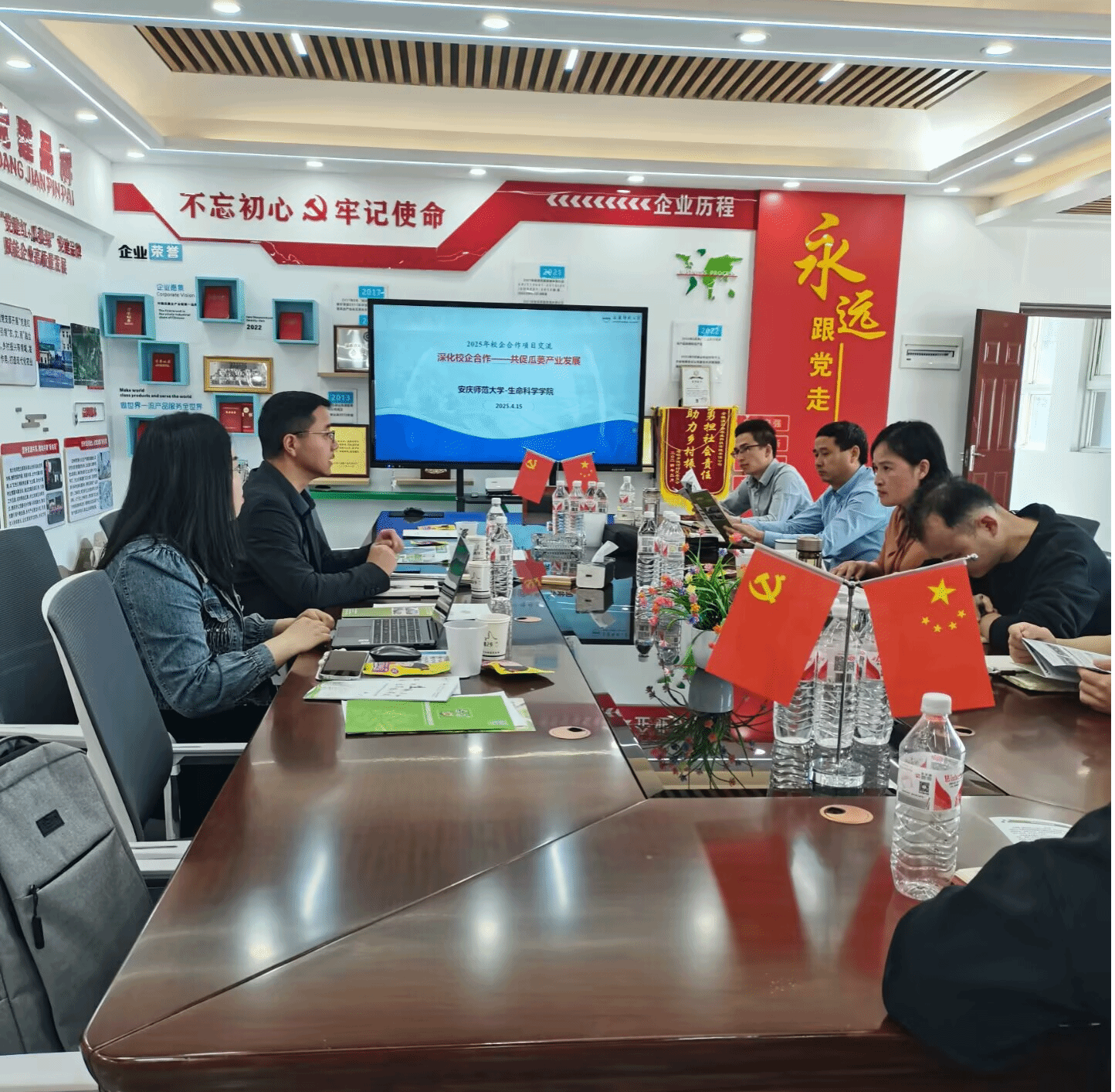 4月15日,安庆大学伟德国际1949始于英国副院长李从虎、程旭博士、储雅静博士等科研团队一行,赴安徽满园春科技有限责任公司开展产学研合作调研。潜山市委组织部服务中心主任潘宜生、市科技局朱仁国等政府代表共同参与此次调研活动,旨在推动校企深度合作,促进科技创新与产业升级。