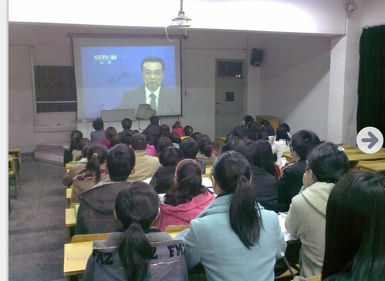 活动开始,曹老师强调了本次活动的主题是学习“两会”精神,并简要的介绍了“加快转变”、“低碳经济进视野”、“收入分配”等两会讨论的热点问题。此后,在场的全体党员观看了有关“两会”现场的视频,学生们不时做笔记,在会后交流学习体会并进行了讨论。现场气氛热烈。