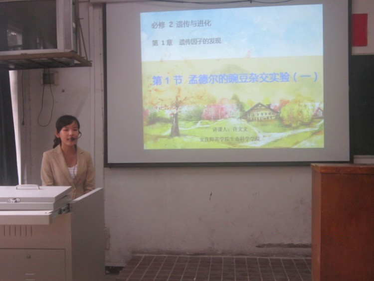比赛开始,选手们参照事先选好的课题,依次上台讲解。11级生科1班许文文同学通过六个板块讲解了《孟德尔豌豆杂交实验》的内容,她列举实际事例来导入融合遗传的学说,进而引入孟德尔的相对性状杂交实验,结合实验得到的数据,解释并验证分离定律。11级生科2班吴丹同学通过图文并茂的方式总结了有氧呼吸与无氧呼吸的异同点,详细介绍了《ATP的主要来源—细胞呼吸》这一章节。选手们的教学过程循序渐进,条理清晰,讲解到位,赢得了评委们的一致好评。赛后,经过评委的认真评定,许文文同学取得综合成绩第一名,已被推荐进入校级决赛。生科院历年来重视师范生的综合素质培养,通过举办一系列的讲课、说课、课题模拟比赛,强化了学生对专业知识的掌握,激发了学生的学习兴趣,起到了较好的示范作用。 (曹勇)