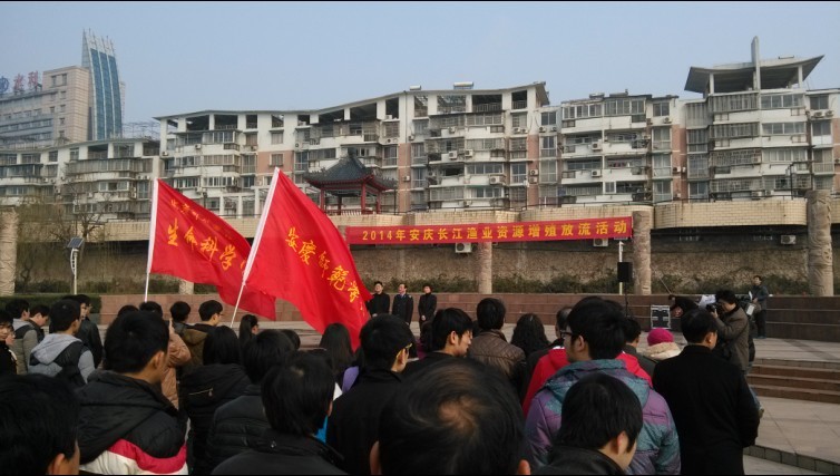 活动上,安徽省农委,安庆市政府,市农委的有关领导依次讲话,阐述了长江渔业资源增殖放流的意义,特别是对维护长江生态平衡所起到的巨大作用。生科院学生代表张莉同学宣读了题为“保护长江水生生物,建设和谐美好家园”的倡议书,提出从现在做起,从自我做起,从我们做起,坚决抵制破坏长江水生生物资源的违反行为,广泛开展保护生态环境,关爱母亲河的活动。讲话之后,农委领导,大学生,渔民代表,社会各界代表依次参加了鱼苗的放流活动。