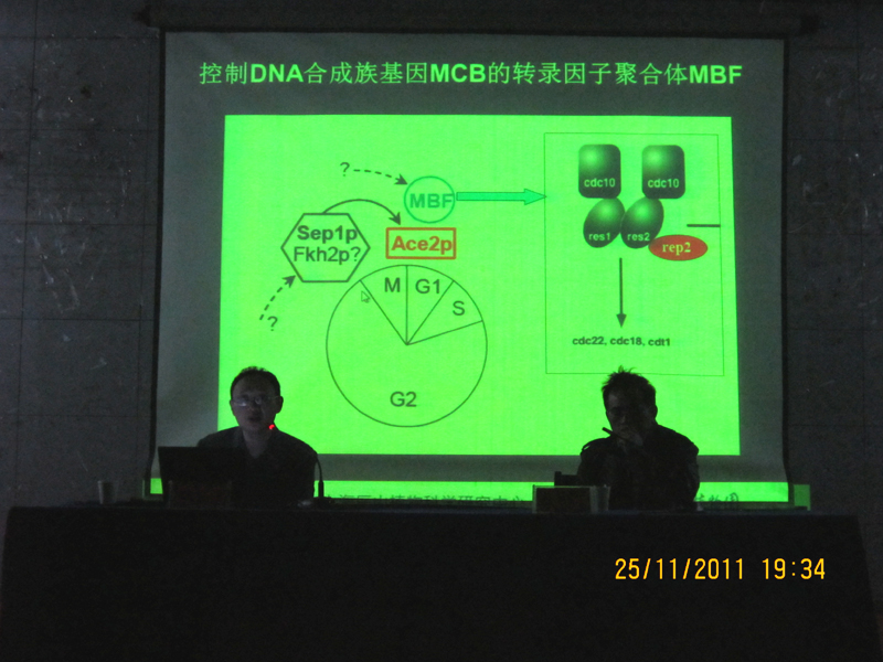 储昭庆博士从植物细胞周期的调控特征入手,详细阐述了研究细胞周期的理想模型,如何根据抗逆基因在进化过程中的高度保守性筛选对胁迫敏感的突变体,如何利用细胞同步化技术研究找出抗逆基因,分析抗逆基因的功能,最后通过转基因手段提高目标植物的抗逆性。最后储博士结合自身在国外研究成果,阐述了其下一步工作设想和思路。储昭庆博士的讲座见解独到,逻辑严密,通俗易懂,加深了同学们的专业知识,讲座现场气氛热烈,对学生了解植物抗逆和分子进化具有重要的指导和帮助作用。