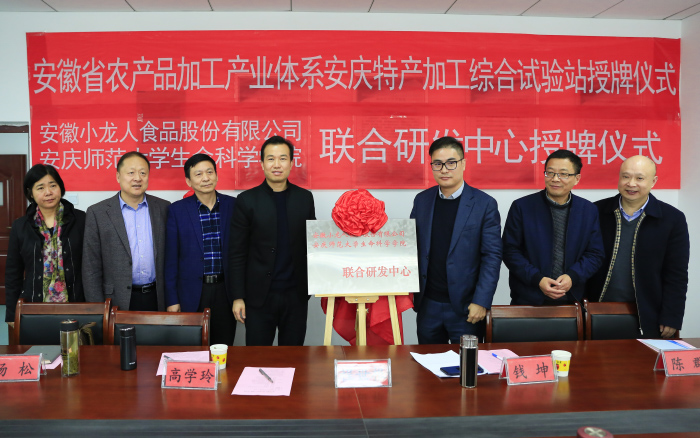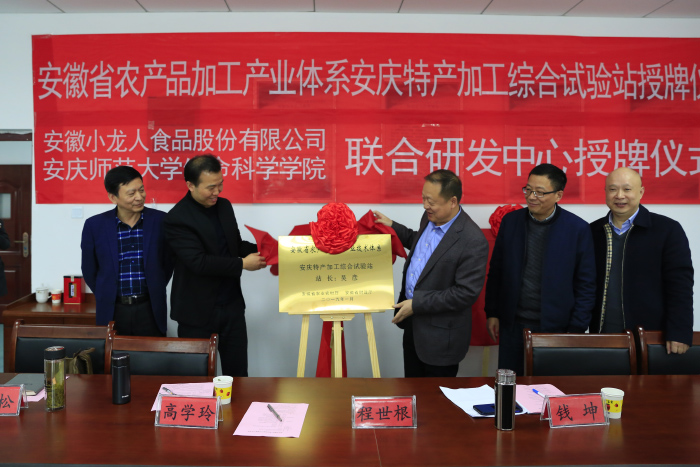 3月29日,伟德国际1949始于英国举行安徽省农产品加工产业体系安庆特产加工综合试验站授牌仪式暨伟德国际1949始于英国与安徽小龙人食品股份有限公司联合研发中心授牌仪式。安徽省农业农村厅科技教育处处长程世根,安徽省农产品加工产业技术体系首席专家钱坤、安徽小龙人食品股份有限公司总经理李志兴等企业人员与伟德国际1949始于英国负责人参加授牌仪式。仪式由伟德国际1949始于英国党委书记吴甘霖主持。