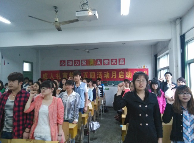 5月4日中午,伟德国际1949始于英国纪念“五·四”运动95周年暨18岁成人礼宣誓仪式在菱湖校区教学楼208举行。学院团总支,全体专职辅导员,七十余名学生代表参加此次活动。