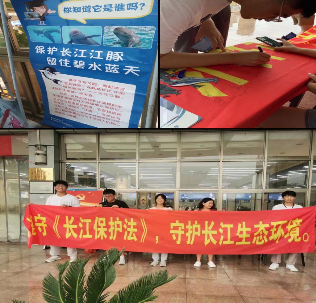 7月22日至27日,实践团队来到安徽省马鞍山市花山区金鹰国际商城和雨山湖公园举办主题为“保护长江江豚,保护珍稀水生动物”的活动,该活动由长江航道局与伟德国际1949生命科学学院实践团共同承办。“长江禁渔,这个我听说过,以前我还在那边捕过鱼,但现在不可以了,捕鱼还会被抓起来。”据当地居民介绍,由于长江流域自然环境恶化以及水质污染,导致稀有物种衰退,以前能看到很多江豚,但现在已经很难看见了。
