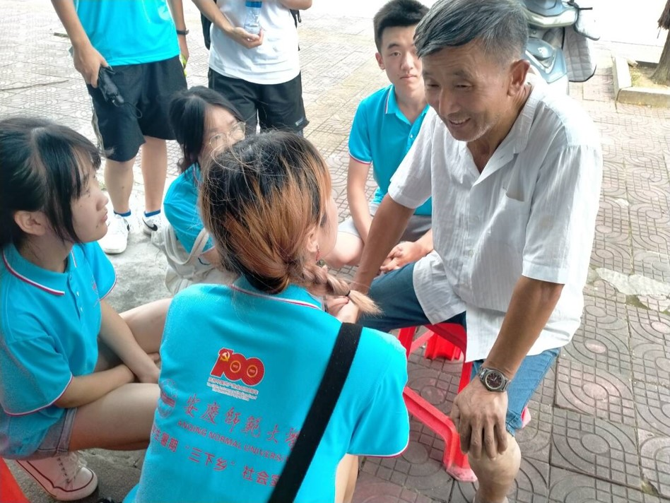 7月25日,实践团前往岳西县莲云乡敬老院开展志愿服务活动。爷爷奶奶们对大家的到来感到非常的开心,和团队成员热情地交谈。团队成员们首先为爷爷奶奶们介绍了一些党百年征程中的小故事和有趣的新鲜事来帮助他们解闷,大家被成员们声情并茂的演讲所吸引,不时传来阵阵笑声。交谈之后,团队成员还帮他们做了一些力所能及的事情、例如提水、打扫卫生等,团队成员们从中体会到奉献的快乐,爷爷奶奶也对此表示了感谢。