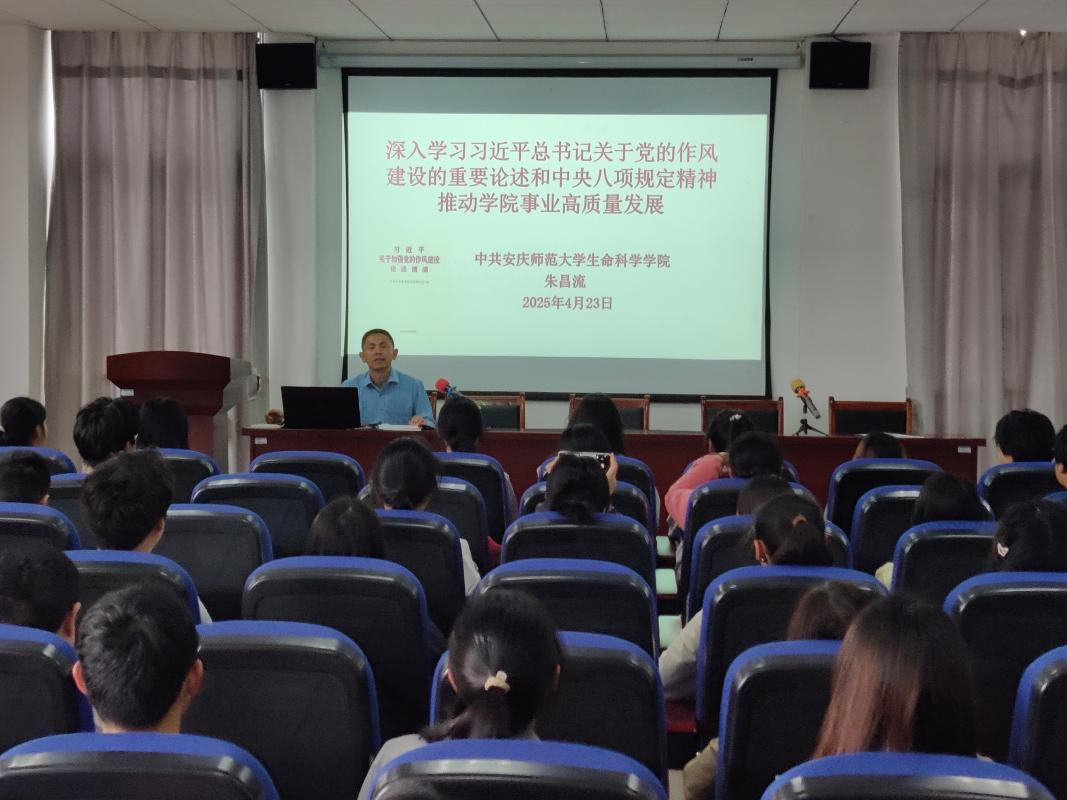 学院党委书记朱昌流以《深入学习习近平总书记关于加强党的作风建设的重要论述 深入贯彻中央八项规定精神学习教育 推动学院事业高质量发展》为题向全体教师和部分学生党员作专题党课报告。他分析了党的作风建设的发展历程、重大意义、目标要求、重点任务和路径方法,阐明了中央八项规定精神的内容和实质。他强调,全体党员干部要通过学习教育树形象、正作风、守底线、有作为。学院班子要以更强的规矩意识,做到科学化决策,提高学院治理体系和治理能力现代化水平;要以更实的工作作风,推进重点工作,提升学院核心竞争力;要以更优的服务理念,强化党建引领,凝聚发展的合力。