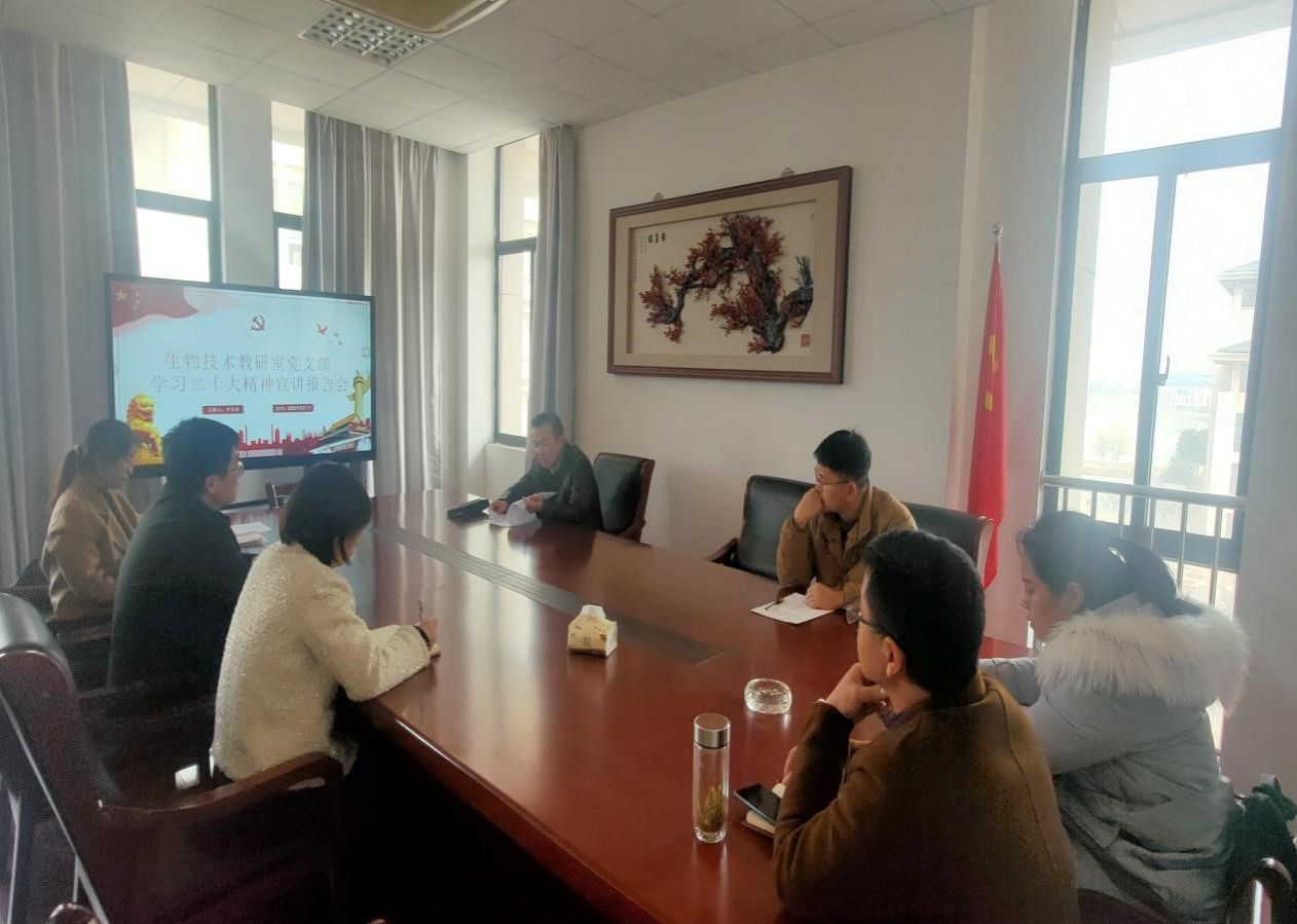 3月1日,学院党委委员、副院长吴彦深入生物技术教研室党支部宣讲党的二十大精神,党支部全体党员到会聆听。