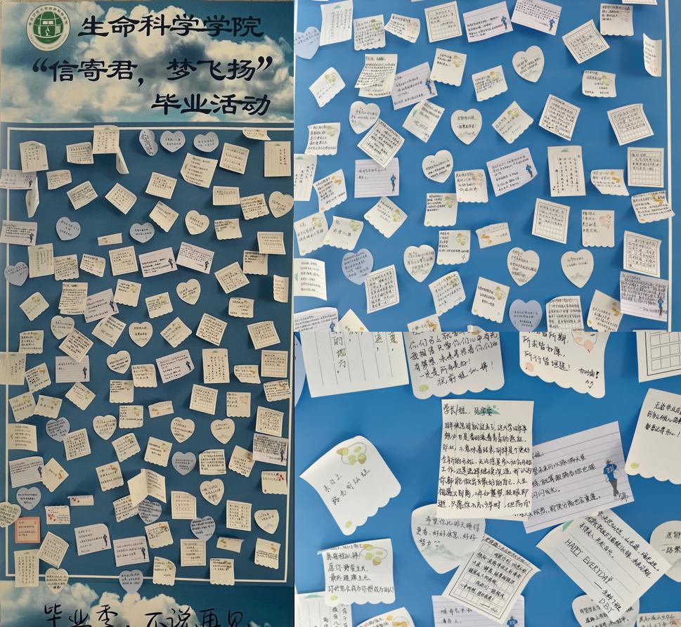 “试炼的终点是花开万里”“愿你们不彷徨不迷茫”“祝学长学姐们前程似锦,未来可期”……展牌上贴满了各式各样的便利贴。5月17日至22日,伟德国际1949始于英国举办“信寄君,梦飞扬”活动,陆续有四百余名学院学生为学院毕业生送上自己的暖心祝福。