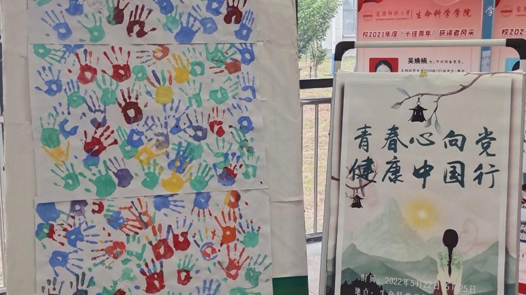 红色、蓝色、绿色……白色的海报纸上很快就布满了大大小小色彩斑斓的“手掌”。5月25日中午12点,心理健康中心在学院大厅摆放好空白海报纸,等待参加活动的师生用双手进行绘画。学生们用这种有趣的方式立志:一心向党,奋发图强,愿扛起肩上重任,用双手去为祖国的明天创造更多的可能。