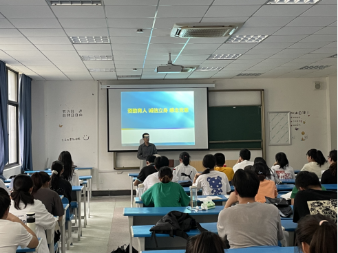 陆天雨系统介绍了学校及学院学生资助体系及内容,开展了诚信、励志相关教育,解读了资助相关政策,并结合考试周强调诚信考试,引导参会学生在日常生活中诚信立身、感念党恩,以身示范,成长为一个优秀的大学生。