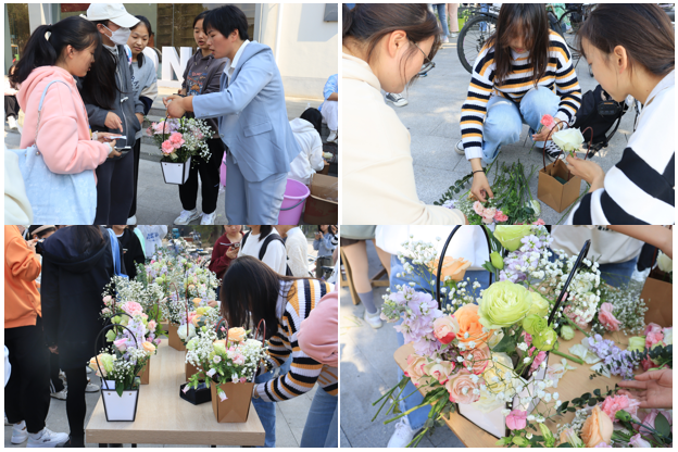 “大荔枝”“洋桔梗”“紫罗兰”“尤加利叶”…… 11月9日中午伟德国际1949始于英国在东苑食堂门口举办“陌上花开,礼赞二十大”的插花活动,进一步落实《伟德国际1949始于英国2022级新生“1+3+N”模式入学教育实施方案》,加强美育教育,用插花作品表达对党的美好祝愿。活动吸引了近200名学生参与。