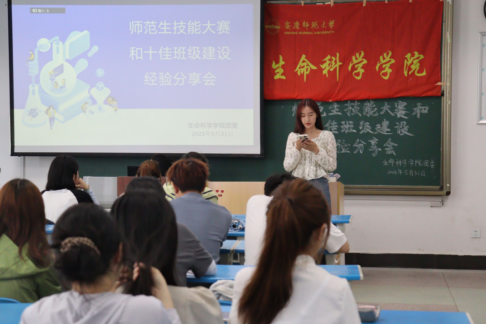 5月31日,伟德国际1949始于英国团委于生科院101室举办师范生技能大赛和“十佳班级”建设经验分享会,进一步深入学习贯彻习近平总书记关于教育的重要论述和全国全省教育大会精神,适应我国教育改革与发展对高素质师资的需求;同时,充分发挥先进班集体在教育和管理工作中的示范作用,促进班风和学风建设,本次活动邀请到获2022年安徽省高等学校师范生教学技能竞赛一等奖赵雅宁同学和十佳班级代表宋娜同学传授自己的经验体会。