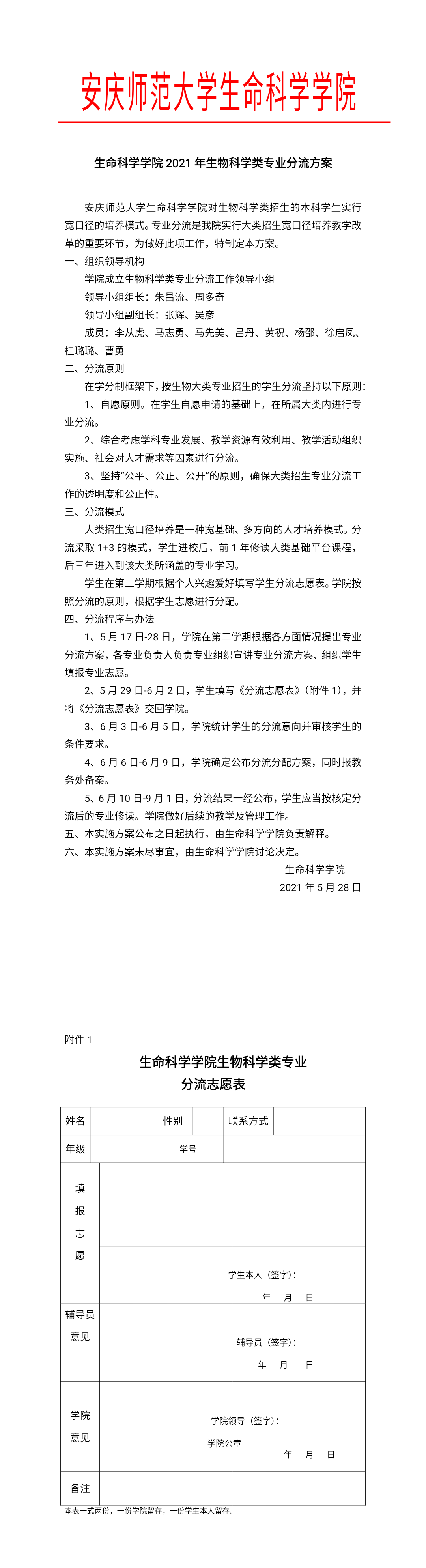 伟德国际1949始于英国2021年生物科学类专业分流方案