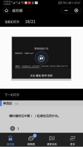 教学有法,教无定法。在前几周的线上教学过程中,植物学教研室几位教师多次沟通交流,探讨如何使线上教学达到更好的教学效果。项小燕老师率先根据教学内容适时的调整了线上教学方案。将建立的慕课资源作为课前预习材料,利用雨课堂教学平台最新更新的功能——可以播放系统声音,录制教学片段的短视频,插入PPT,并在直播课堂上加强与学生的互动。这种教学方式不仅使教学过程能保留回放,所获得的教学数据还能及时反馈课堂教学效果,以便及时调整后面的教学设计。