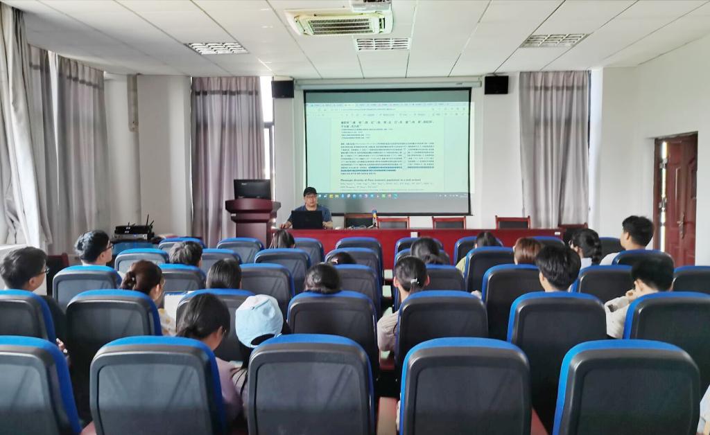 5月29日,伟德国际1949始于英国教师童跃伟作“外来入侵植物的研究现状及展望”学术报告。伟德国际1949始于英国生态学专业本科生和研究生聆听学术报告。