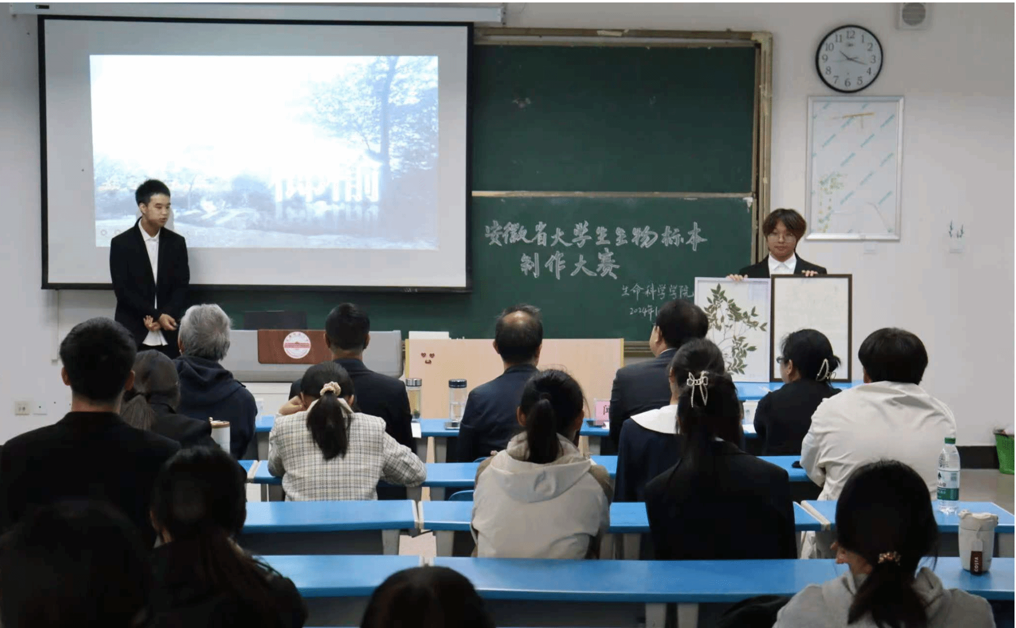 本次比赛分动物标本制作组、植物标本制作组、创新创意组三组进行,评委从标本制作工艺、科学性和创新性角度,对作品的展示和答辩环节进行了综合评价,最终评选出一等奖作品8件、二等奖作品12件、三等奖作品16件。一等奖作品将代表学校参加11月8日在淮南师范学院举办的安徽省大学生生物标本制作大赛。