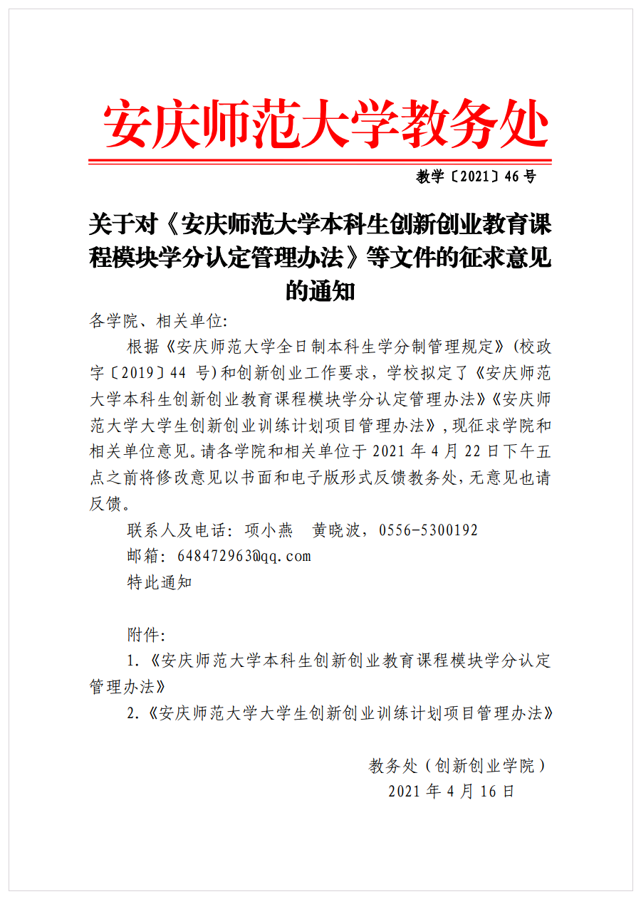 关于对《伟德国际1949本科生创新创业教育课程模块学分认定管理办法》等文件的征求意见的通知