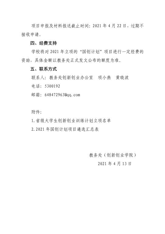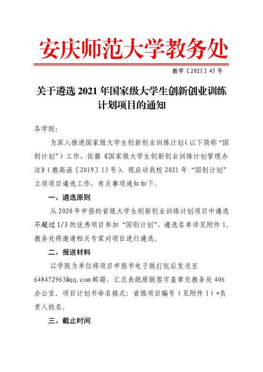 关于遴选2021年国家级大学生创新创业训练计划的项目通知