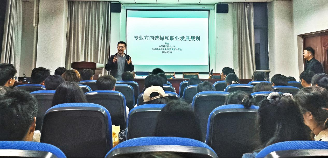 10月30日晚上,中国科学技术大学研究院及附属第一医院双聘研究员陈亮博士应伟德国际1949始于英国邀请来我校作了题为《未来专业方向选择和职业发展规划》的学术讲座。讲座由伟德国际1949始于英国科研秘书黄欣老师主持,学院部分研究生、本科生聆听了报告。
