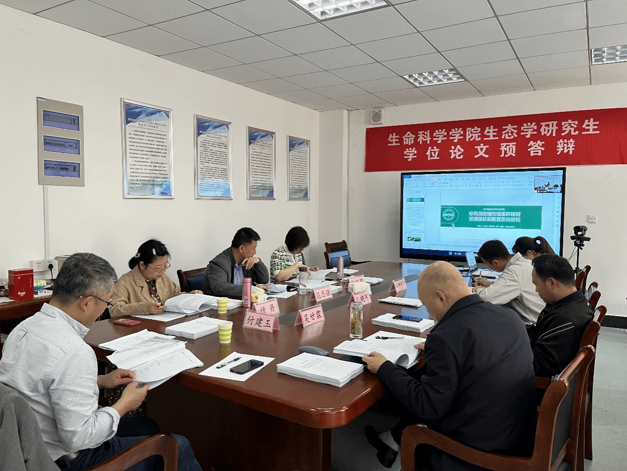 预答辩分植物组和生物组,分别在G411会议室和G402会议室同时进行。每组由1名校外专家、5名校内评委老师和1名答辩秘书组成。研究生导师、部分相关专业老师和全体在校研究生参加了预答辩会议。