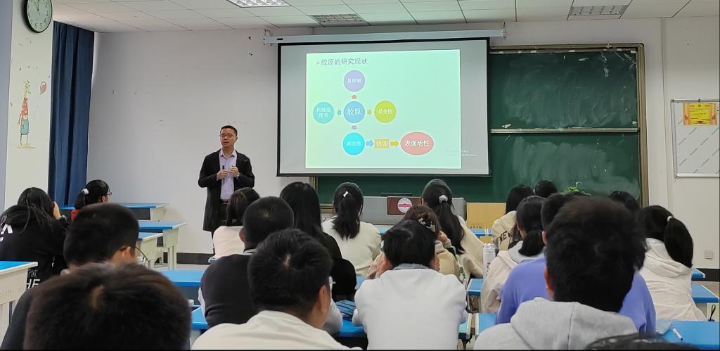 本次报告,内容丰富、浅显易懂,通过此次报告,使学生们对胶原及其应用领域有了更新的认识。同时,李从虎老师与感兴趣的同学进行了更深层次的互动与交流,拓展了学生们的视野,开阔了学生们的思路。(撰稿:穆丹;摄影:崔家豪;审核:张辉)